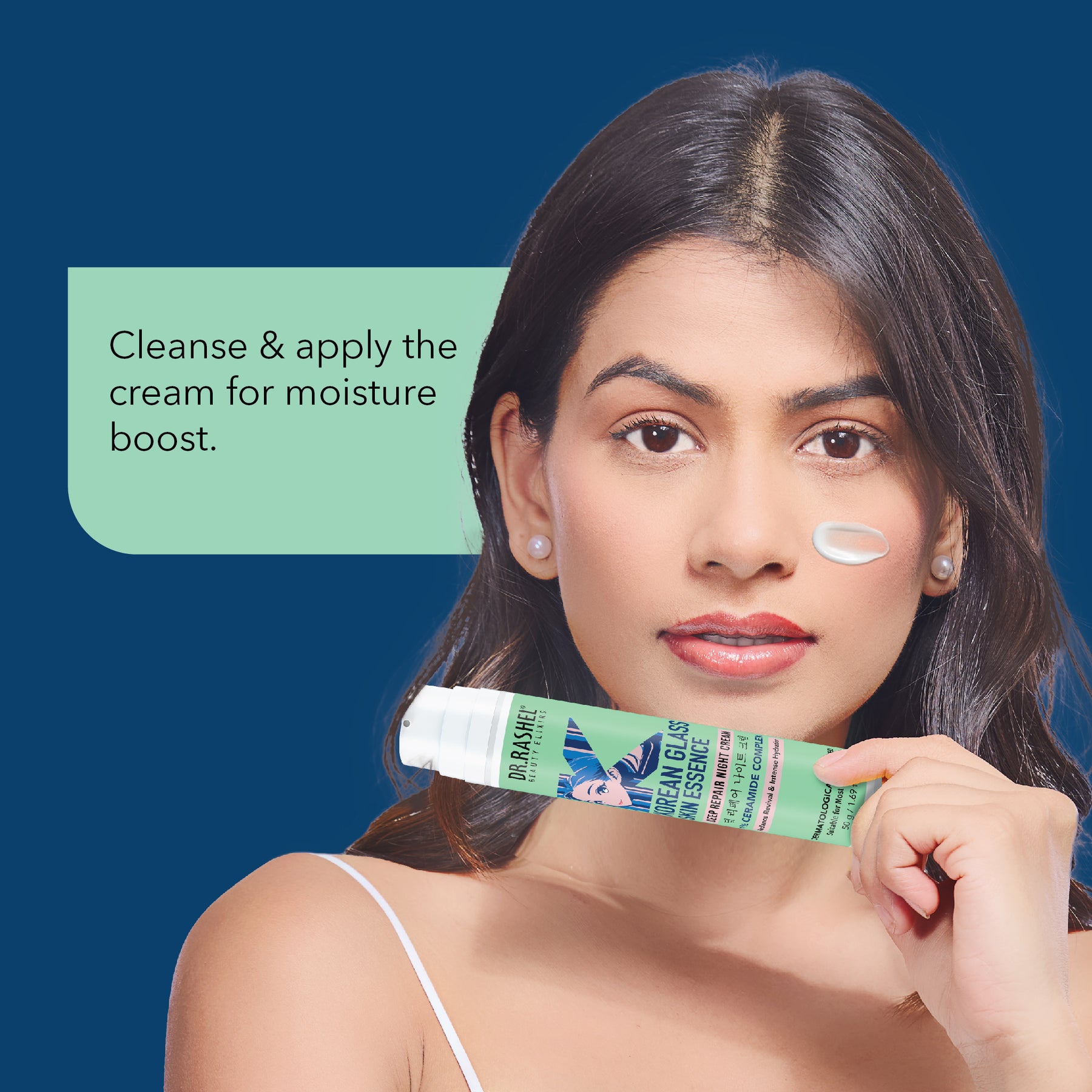 Cleanse your face and apply a small amount of Dr. Rashel Korean Glass Skin Essence Night Cream evenly before bedtime for overnight hydration and repair.