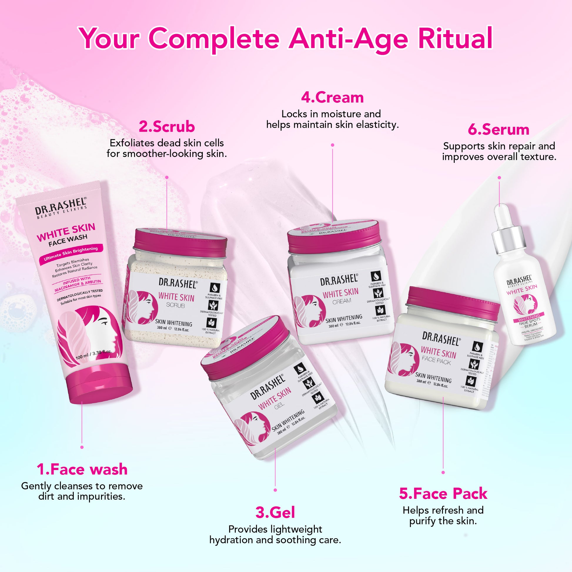 Cleanse & Exfoliate: White Skin Face Wash gently removes impurities, while White Skin Scrub exfoliates dead skin cells to reveal soft, refreshed, and smooth skin.