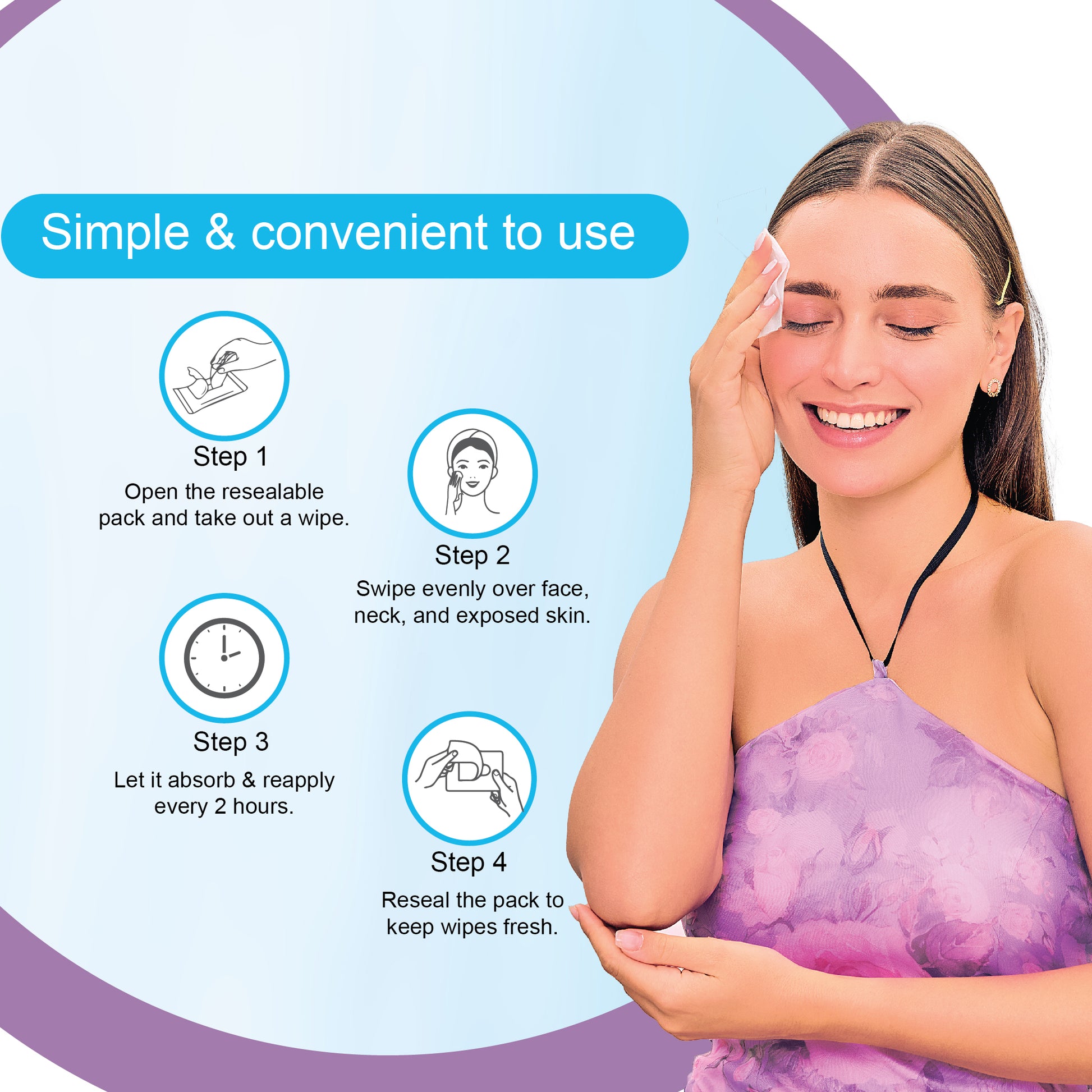 Experience the refreshing goodness of Cucumber Sunscreen Wipes with SPF 15 Protection. These easy-to-use wipes provide instant sun protection while keeping your skin cool and hydrated. Formulated with soothing cucumber extracts, they help fight sun damage and refresh your skin on the go. Designed for daily convenience, these wipes also remove dirt, excess oil, and even makeup, leaving your skin clean, fresh, and protected throughout the day.