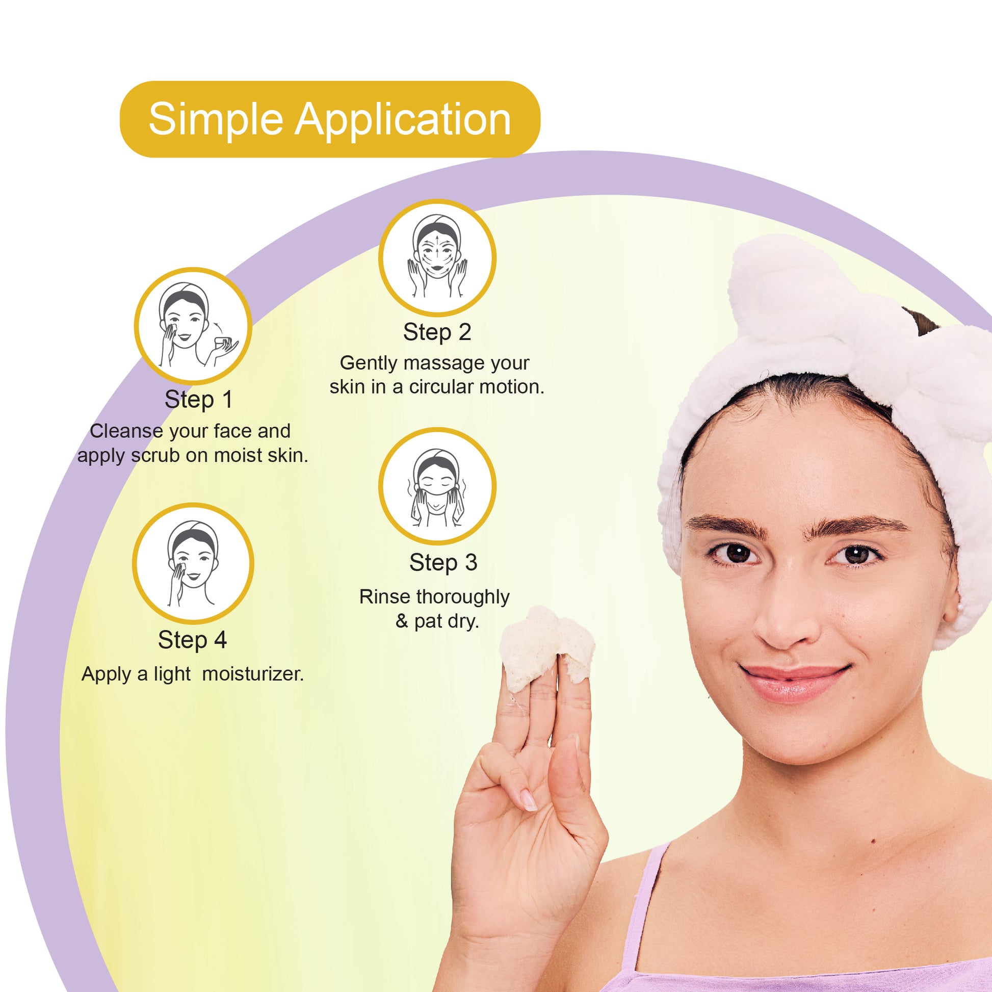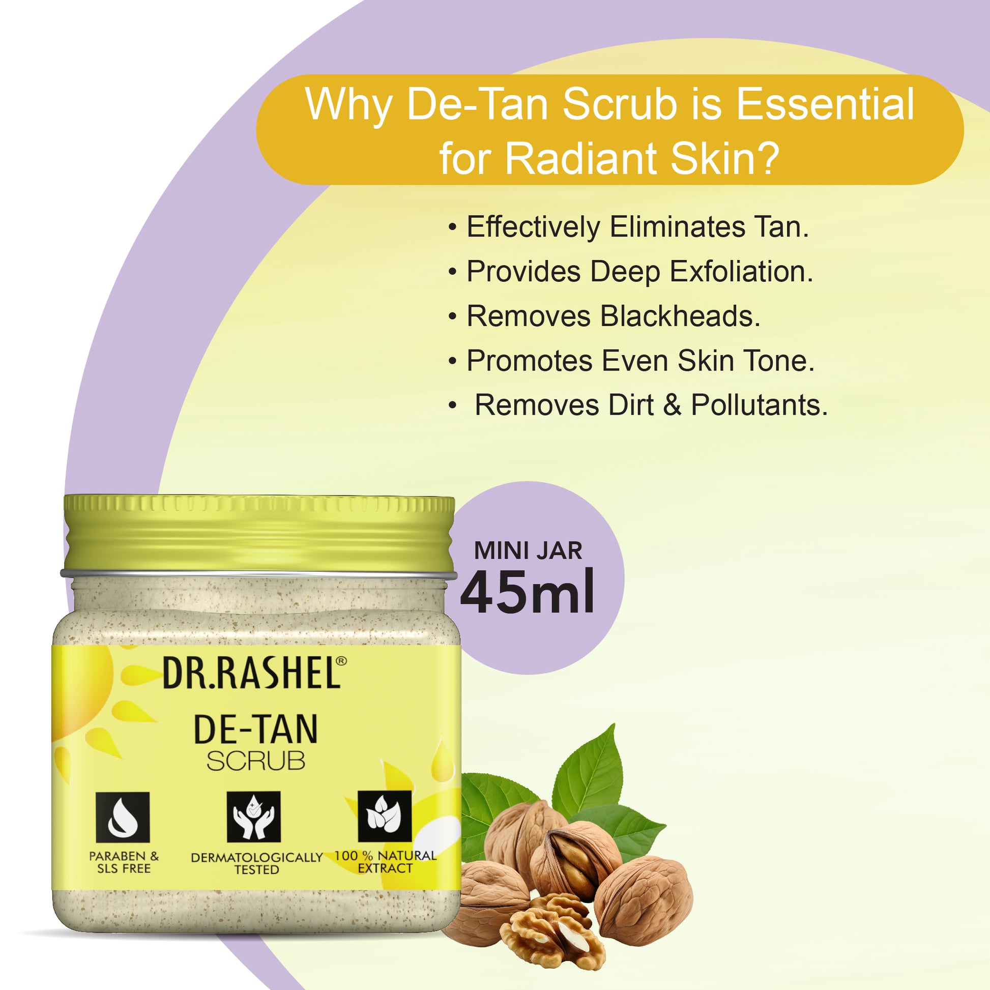 Take a generous amount of Dr.Rashel De-tanScrub and gently massage in a circular motion on the damp skin. Do this for at least 5 minutes, then wash it thoroughly with warm water. For best results, use twice a week.