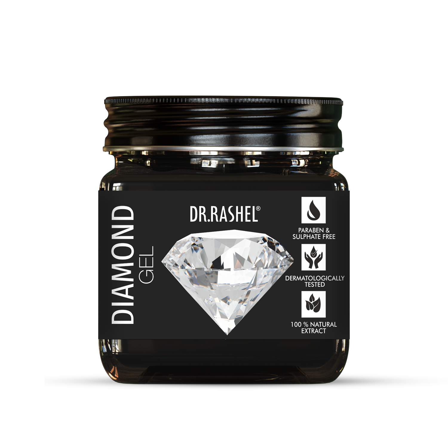 Our diamond gel, infused with Diamond Dust, Niacinamide, and Hyaluronic Acid, brightens and polishes skin. It fades spots, promoting a radiant, smooth complexion. This non-greasy diamond gel for skin suits all skin types.
