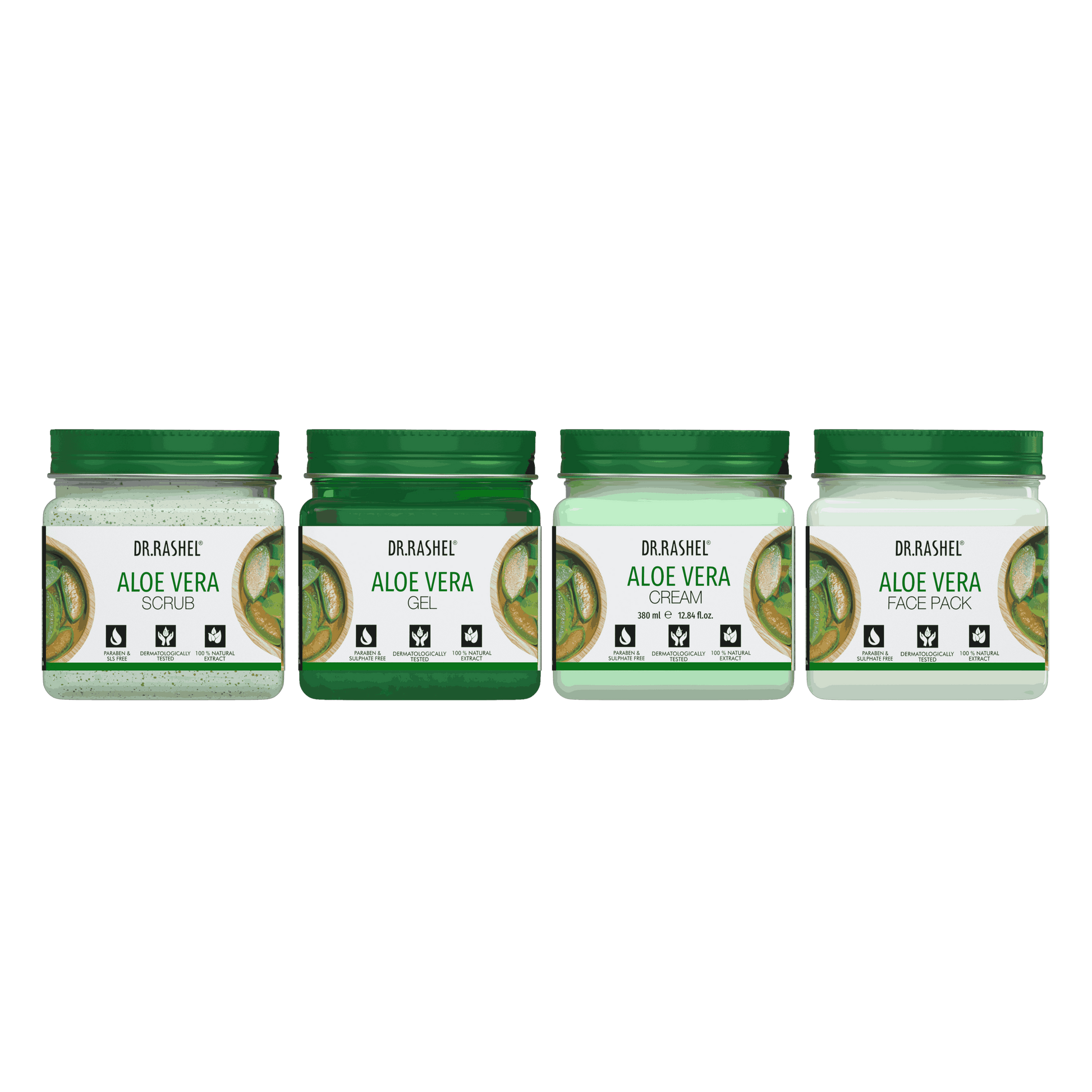 Soothe irritated skin, lock in long-lasting moisture, and reveal healthy, glowing skin with Dr. Rashel's Aloe Vera Pack of 4.