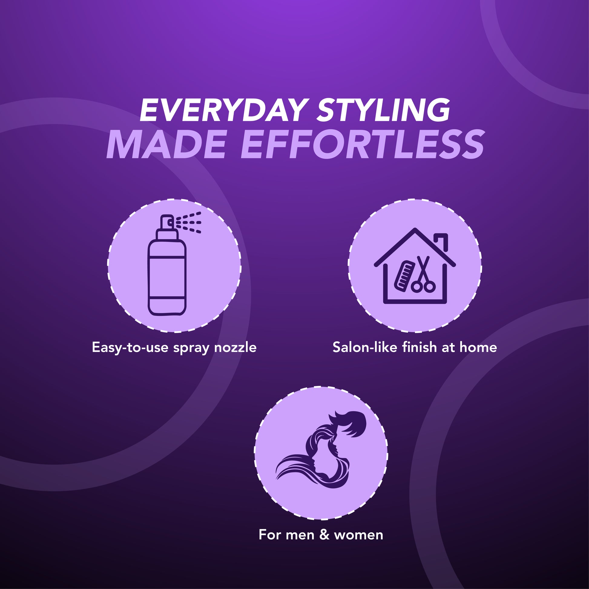 Controls frizz, tames flyaways, resists humidity, and prevents hairstyle collapse. Ideal for long days, special occasions, or quick touch-ups on the go.