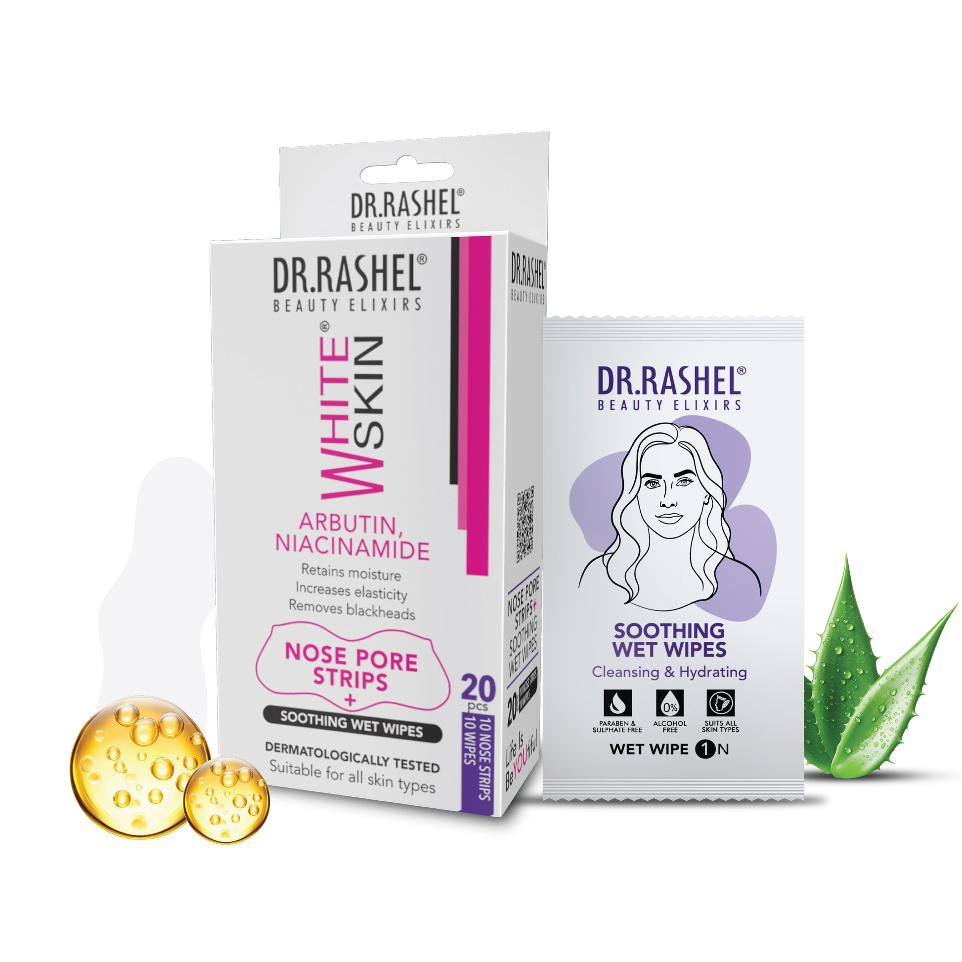 White Skin Nose Strips & Soothing Wet Wipes Combo Pack (20 pcs)