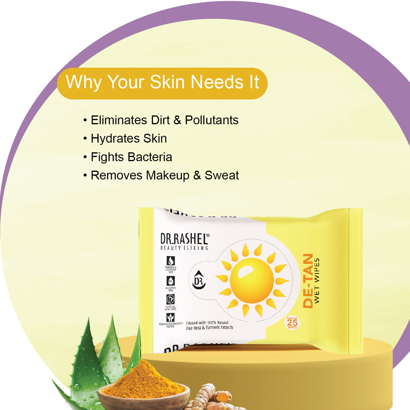 Revive your skin’s natural glow with every wipe of DR.Rashel De-Tan Face Wet Wipe. Enriched with the powerful extracts of Aloe Vera and Turmeric, these wipes work to gently remove impurities and tan while soothing and revitalizing your skin. Aloe Vera provides hydration, while Turmeric’s antioxidant properties promote a clear, even complexion. Conveniently portable, it’s perfect for a refreshing cleanse anytime, anywhere.