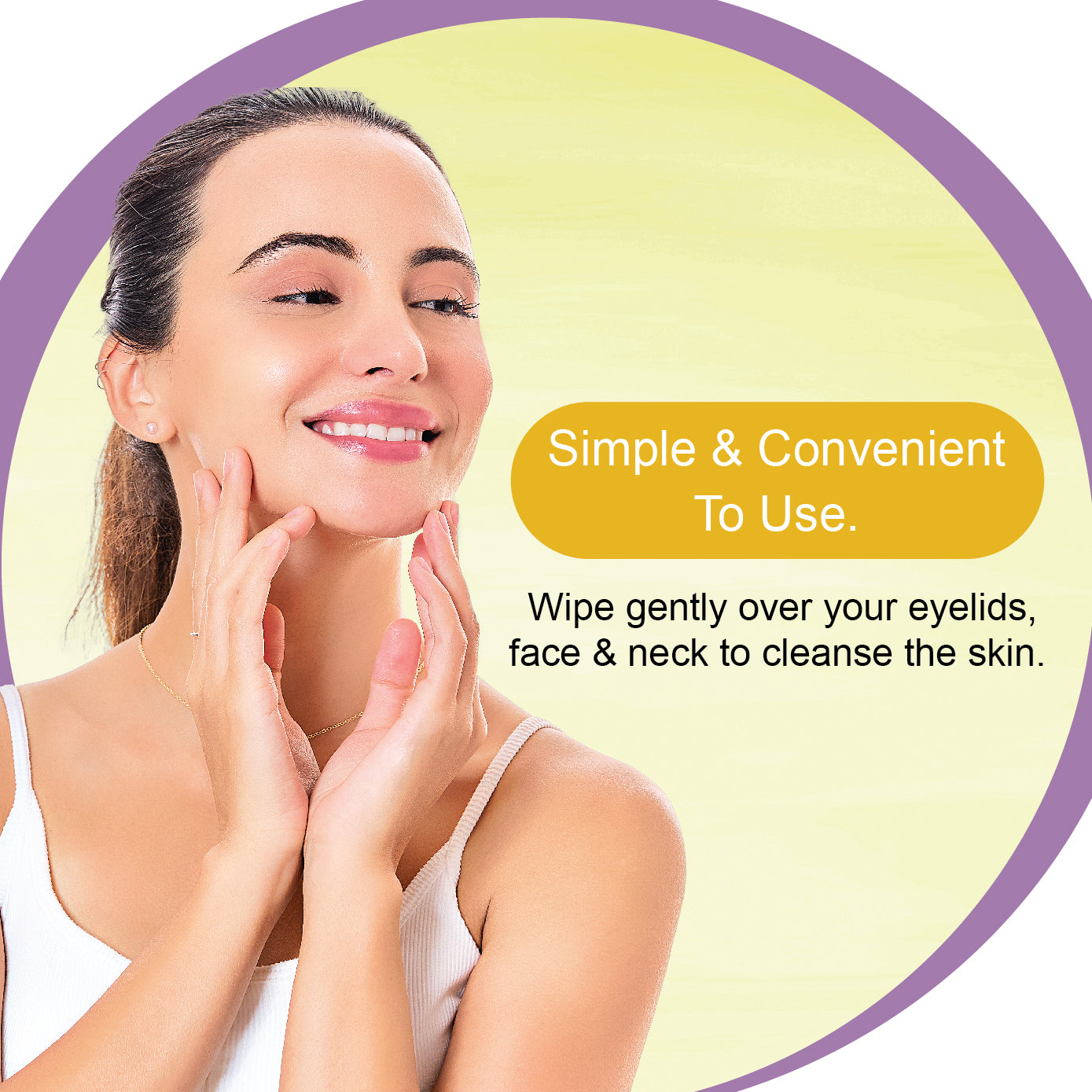 Lift the resealable sticker and pull out one wet wipe. Gently wipe over your eyelids, face, and neck to cleanse the skin. Make sure the pack is properly sealed after use to prevent the wipes from drying out.