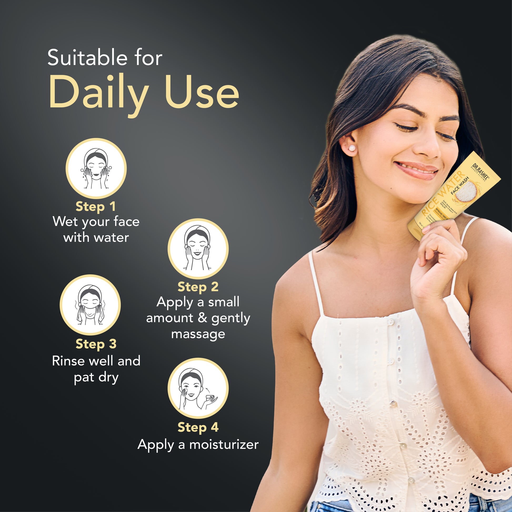 - STEP 2: Apply a small amount of Rice Water Face Wash to your palm and lather.